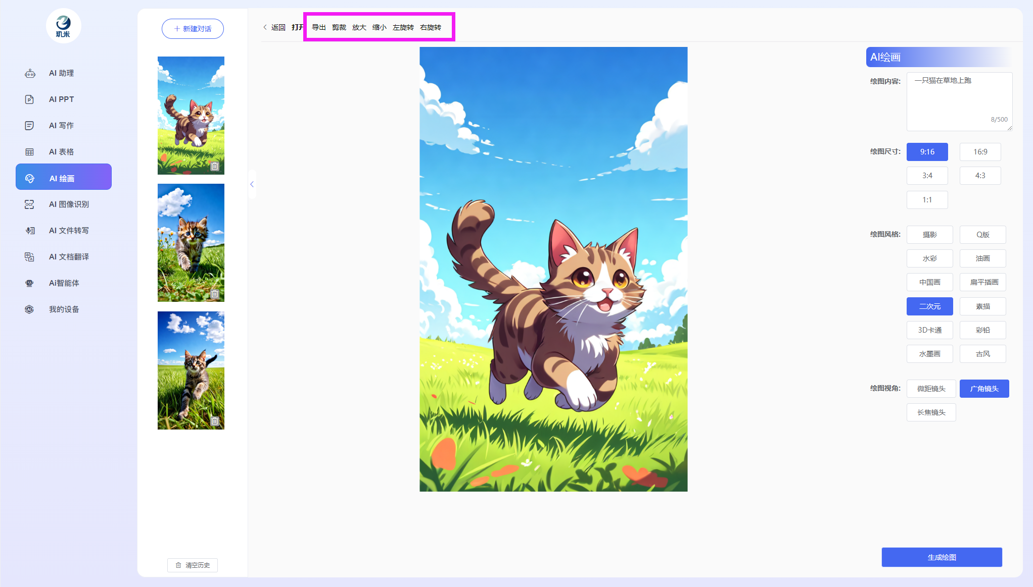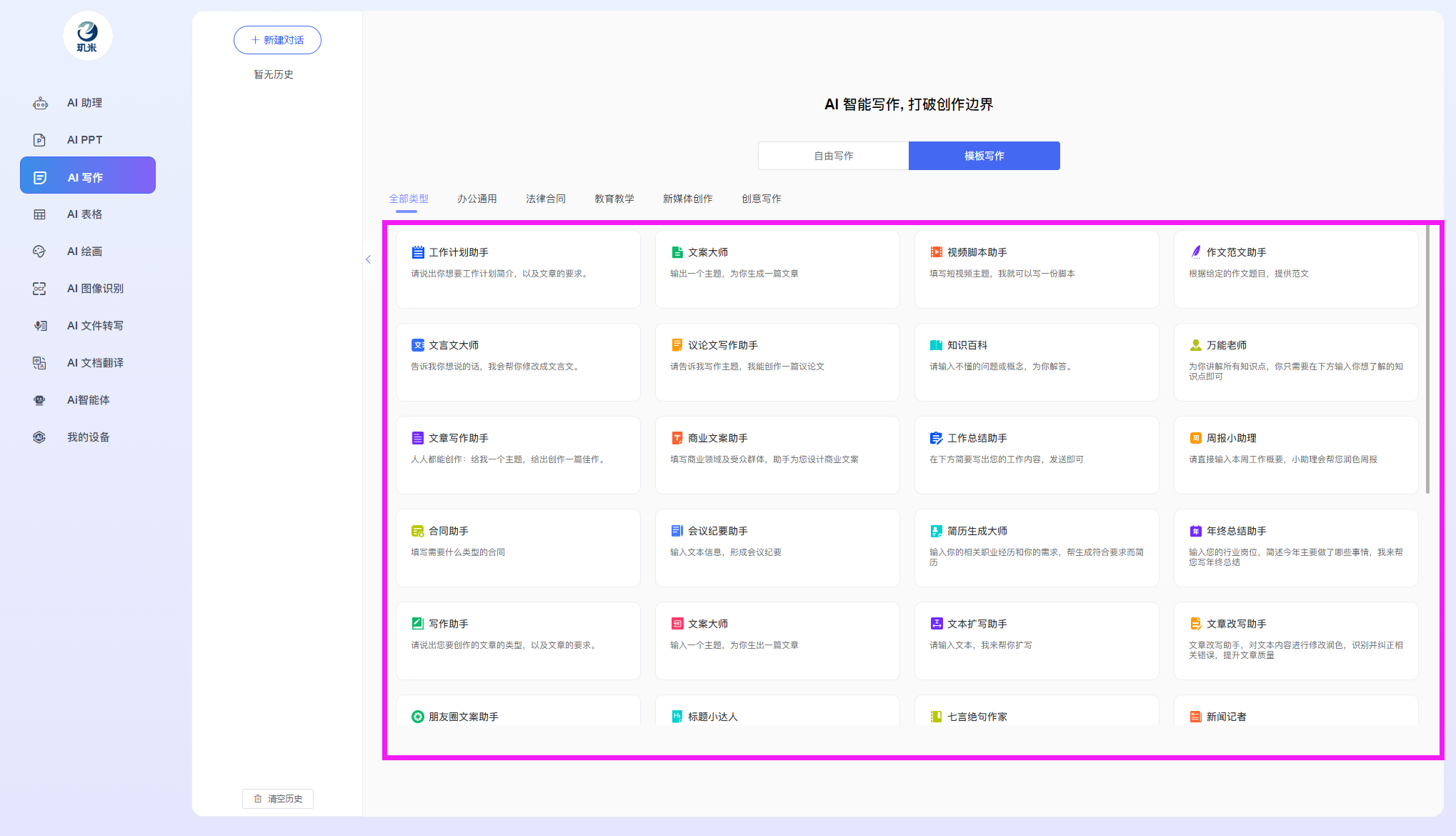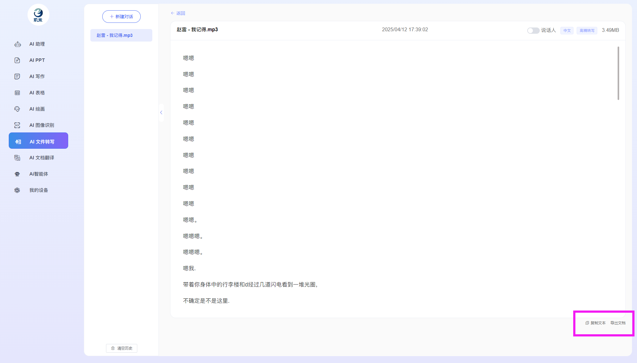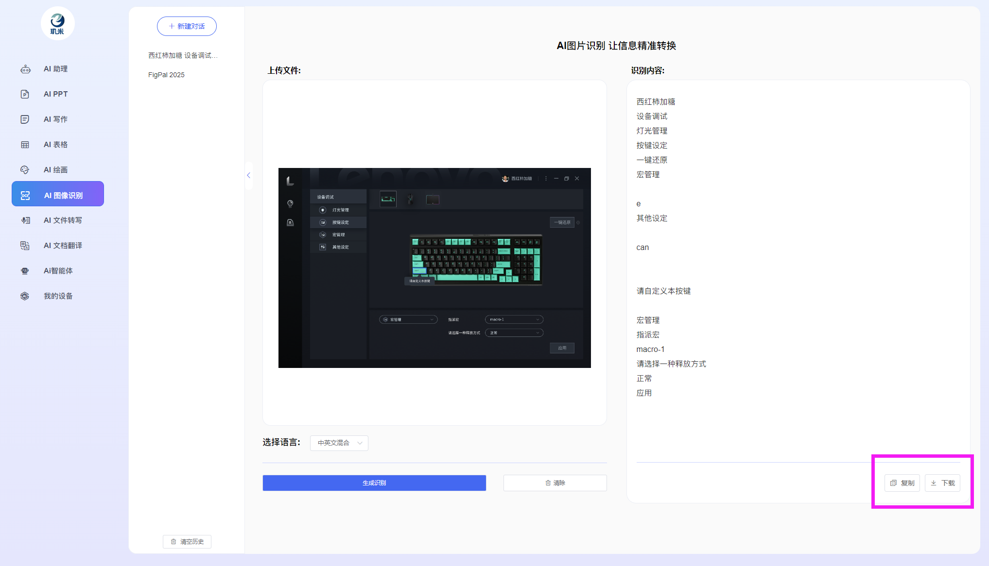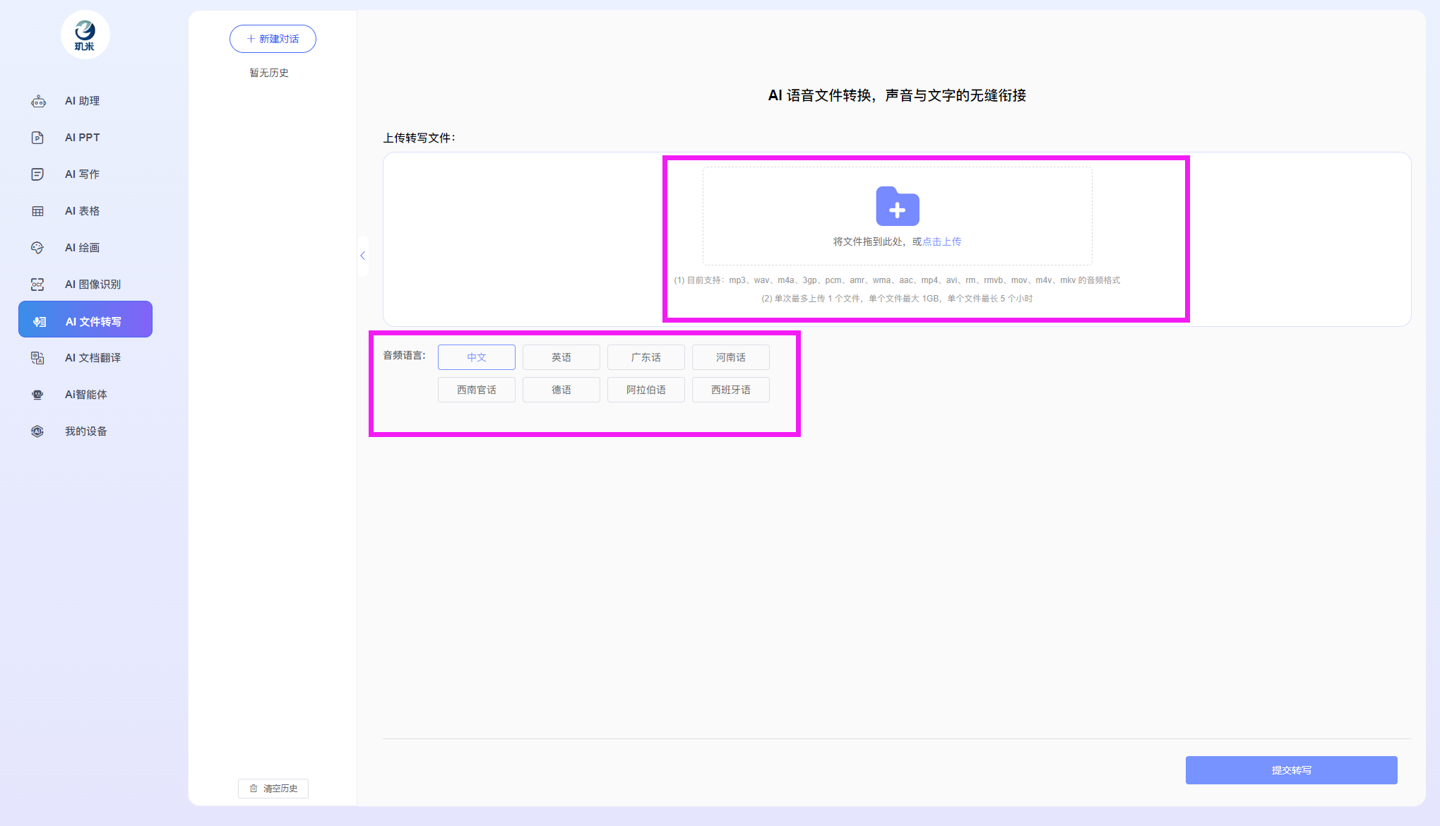 进入玑米客户端软件后,您将可以使用如下各AI功能