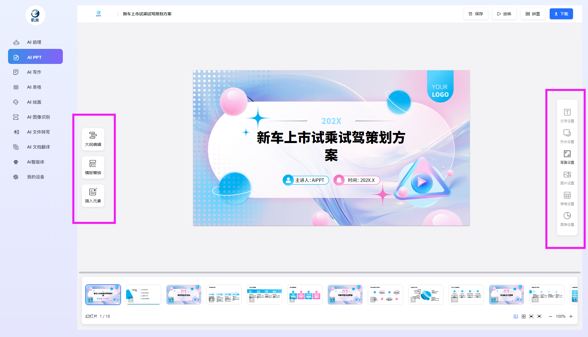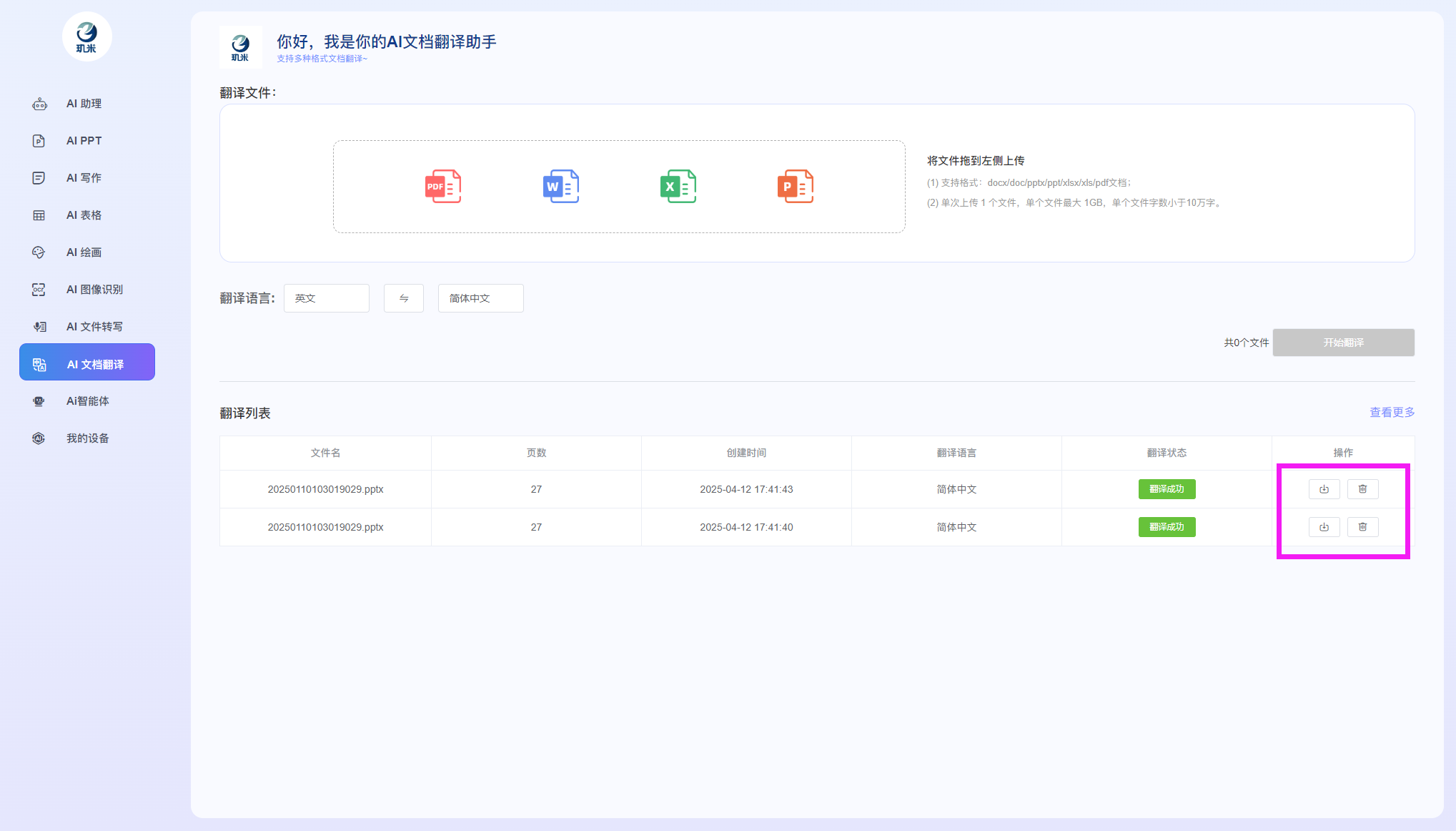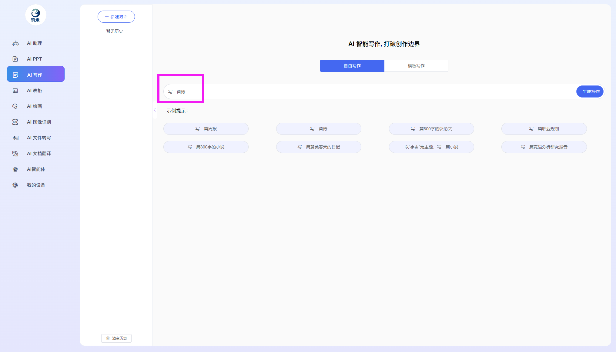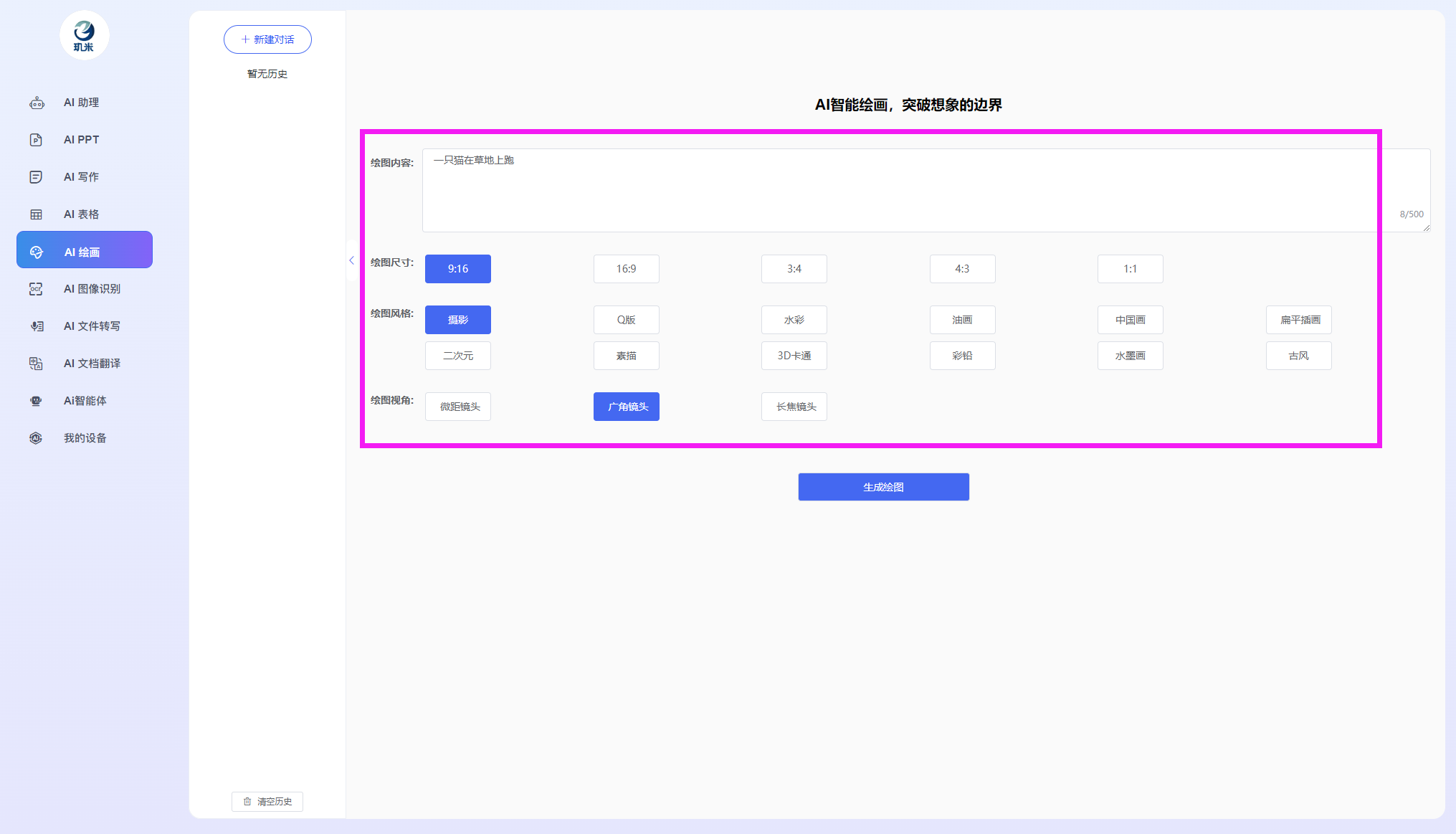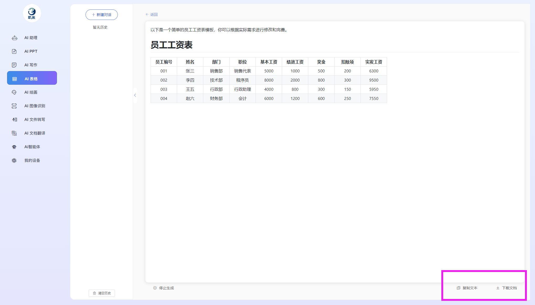 进入玑米客户端软件后,您将可以使用如下各AI功能